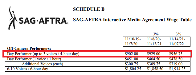 赫伦娜是美国SAG-AFTRA(演员工会-美国电视和广播艺人联合会)的一员,其薪酬也要参考美国的行业标准。肖恩指出,配音演员的薪酬一般以小时而非文本量计费,而为视频游戏配音的均价,大概是每小时250美元。另外根据工会标准,不出镜演员的最低工资标准为每4小时(1天)956.75美元(2008年为759美元)。