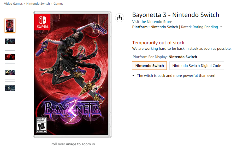 不过与此同时,亚马逊美国区的《猎天使魔女3》实体版已经卖到断货,所谓的抵制活动似乎未能起到应有的效果。