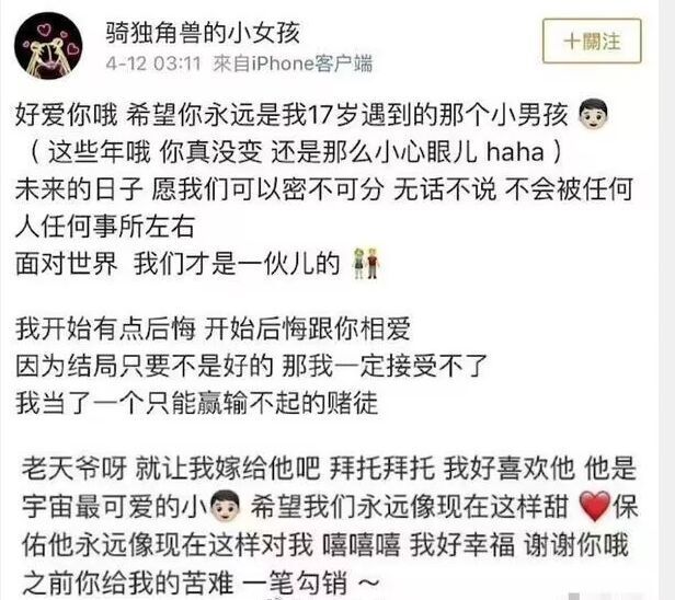这个疑似乔欣的小号发了多条微博,从她的发言来看,无疑就是娜扎所说的恋爱脑,曾说过后悔与对方相恋,明知道结局不会好,但自己依然放不下。更离谱的是,乔欣还表示,老天爷,让我嫁给他吧,真的好喜欢他,他是宇宙最可爱的男孩。