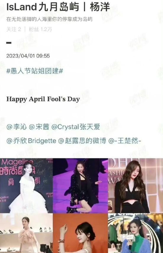 今年愚人节的当天,杨洋站姐一次性晒出了多位女星的照片,其中包括李沁、宋茜、张天爱、乔欣、赵露思、王楚然,巧合的是,这些女星都与杨洋传过绯闻,而且有几位已经实锤过了。