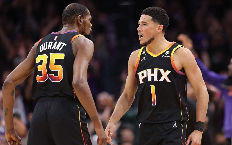 太阳屋漏偏逢连夜雨,三巨头中的克里斯保罗因伤无法出战,系列赛似乎要早早结束。但在压力之下,杜兰特和德文布克同时爆发,回到主场的太阳以121比114和129比124的比分连扳两场,将总比分追成2比2平,两队回到了同一起跑线。