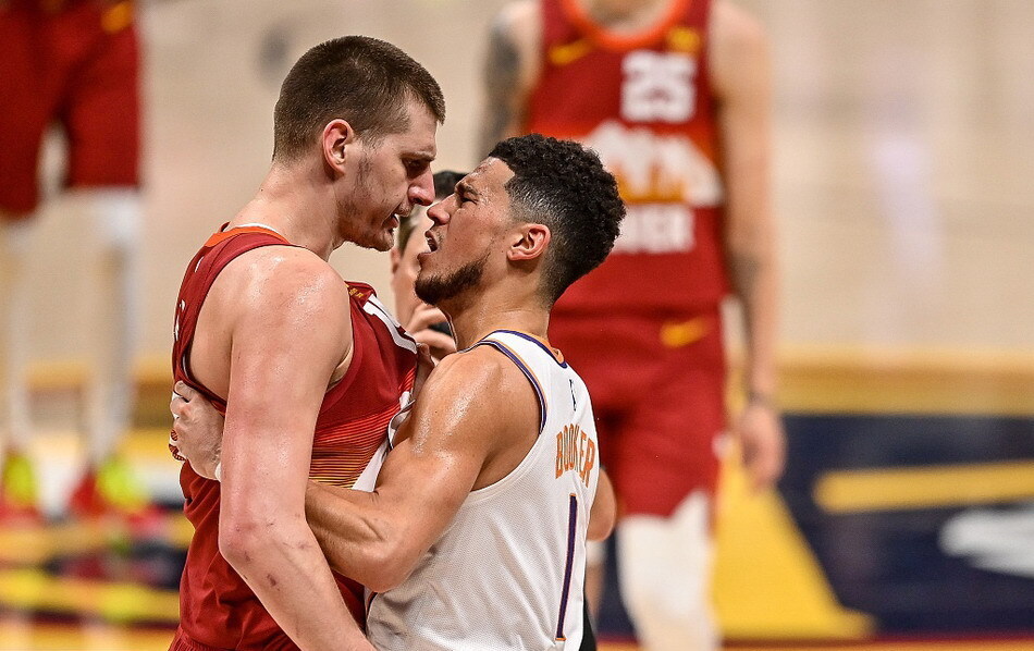 第五回合,两队重回丹佛,为争夺赛点全力一拼。主场作战的掘金打出9比0开局,首节领先11分,太阳的次节一度反超比分,但约基奇挺身而出,率队夺回领先优势。第三节掘金再次打出高潮,将分差拉大到20分开外,末节太阳无力回天。
