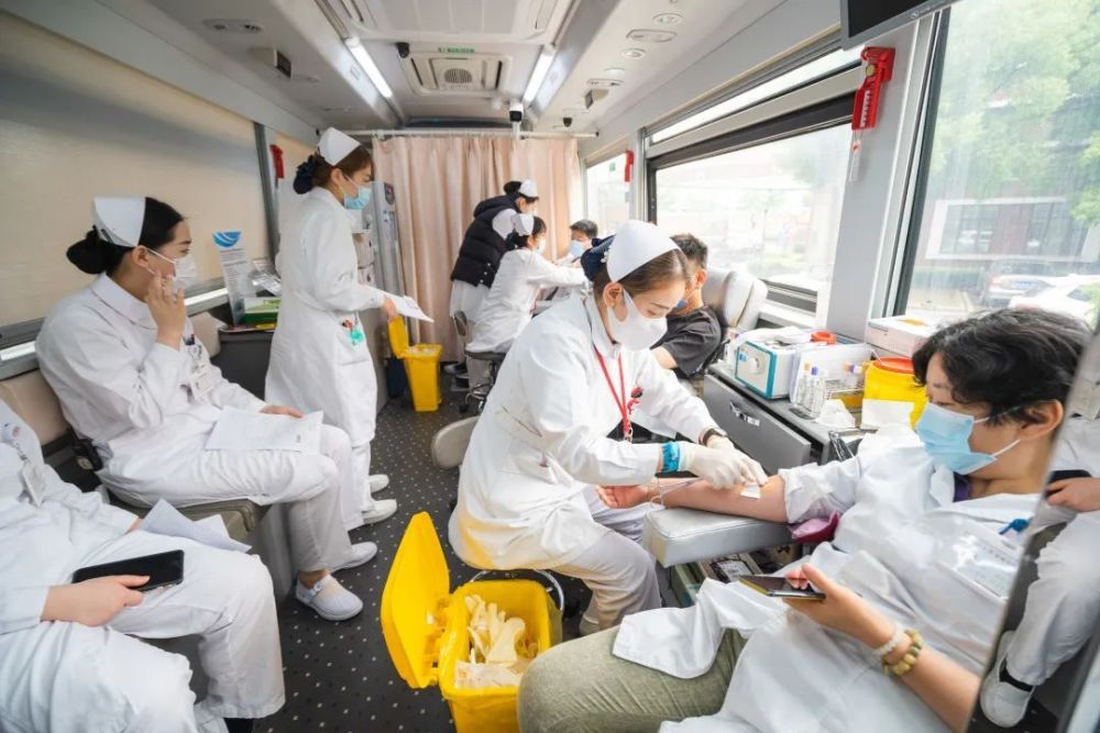 5月20日上午,一辆献血车缓缓驶入上海天佑医院门诊大楼前广场。