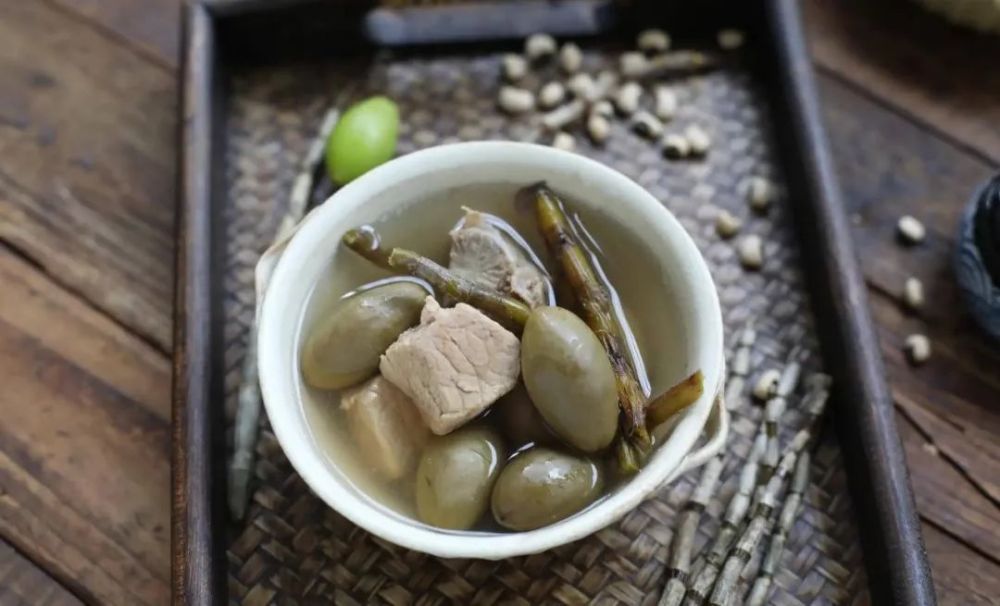 原料:芦根25g/人份、橄榄5枚/人份、胡萝卜100g、瘦肉100g