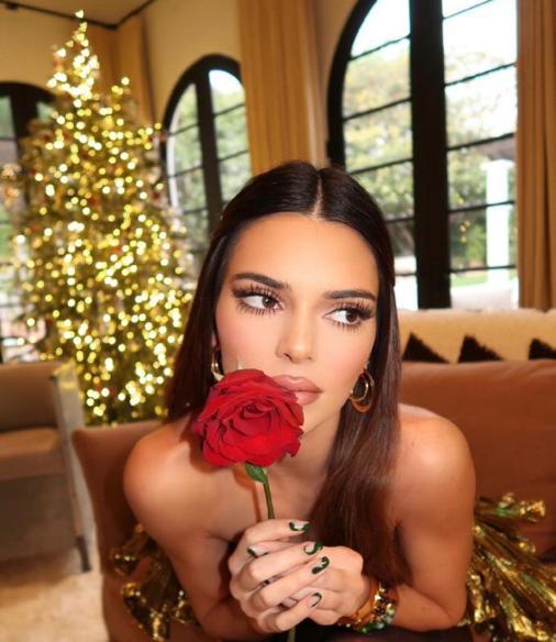 照片中Kandall背后有一颗大圣诞树,身穿金色裹胸上衣,下身超短裙配黑丝,性感又充满诱惑,整体身材纤细苗条,丝毫不见赘肉,只是短裙搭配下蹲动作略显尴尬。Kandall脸抹欧美大浓妆,搭配无敌长睫毛,很有个性很显气场。整个人皮肤、精神状态都很好。