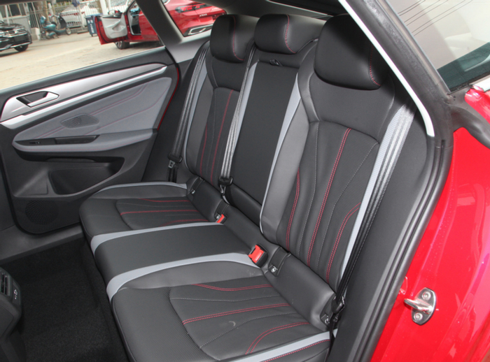 不管是扭脖子还是伸手触控屏幕,都不会感觉到压抑。把前排座椅调整好之后,后排的乘客也有着很多的腿部空间,膝盖距离前方还有着两个拳头多的空余。而且,这款车还配备了掀背式的大尾门,装载物品和拿出物品的时候都更加的便利了。