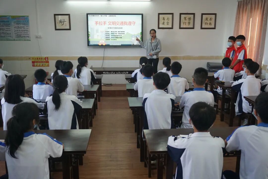 为确保学生上学、放学的交通安全,强化学生交通安全教育,促进学生文明交通行为的养成,莲花镇初级中学开展“手拉手 文明交通我遵守”主题班会课。