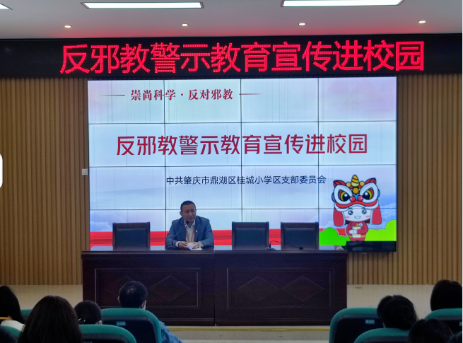 为进一步提高校园师生防邪教、反邪教意识,切实增强群众自觉抵御邪教侵蚀的能力,鼎湖区桂城中心小学开展反邪教警示教育宣传进校园活动。
