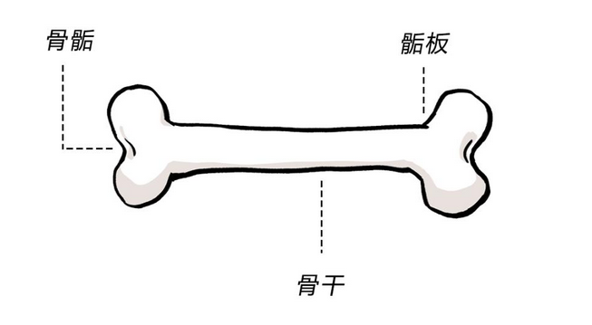 下肢的长度则由大腿和小腿的“长骨”决定。长骨由软骨骨化变成坚硬的骨质而成。长骨的两端叫骨骺(hóu),中间长长的一段叫“骨干”。