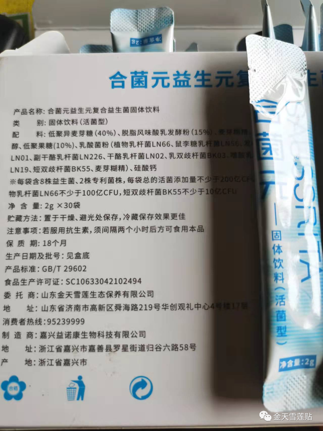 今天推荐大家合菌元,把益生菌、益生元、后生元复合而成的固体饮料,有人叫益生菌,有人叫益生元,一盒30支,价格适中,希望胃肠不舒服的人喜欢