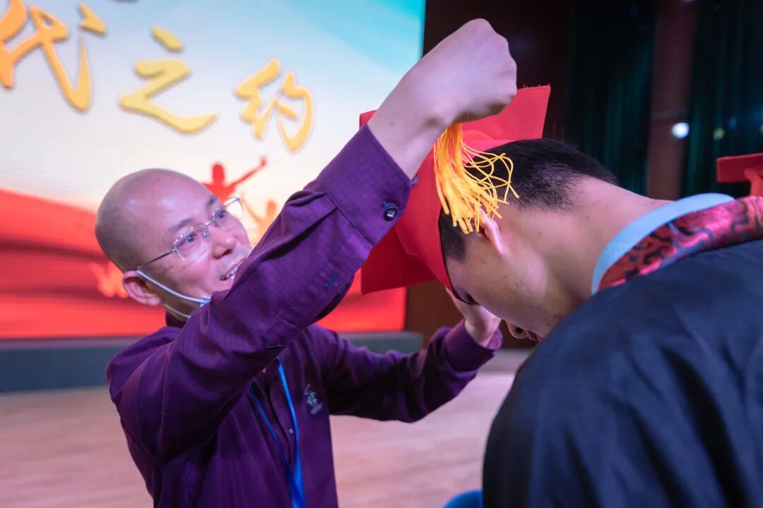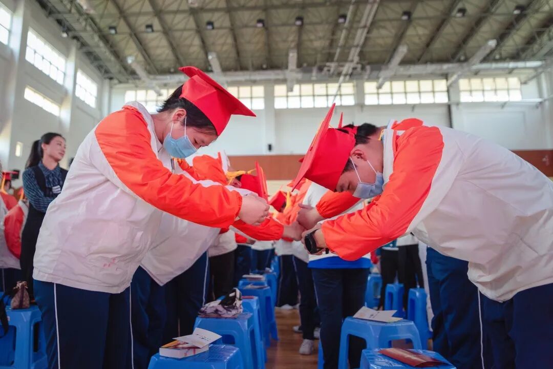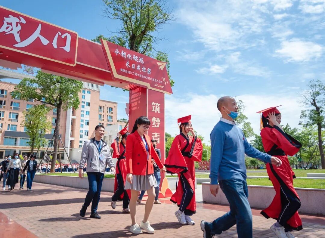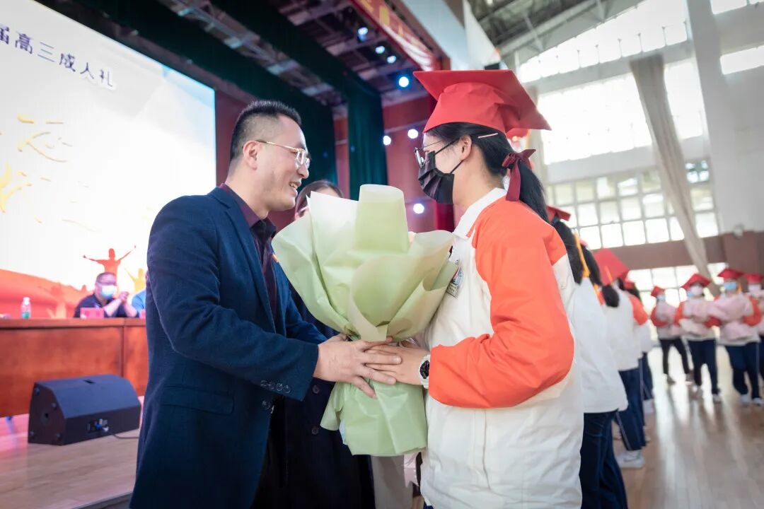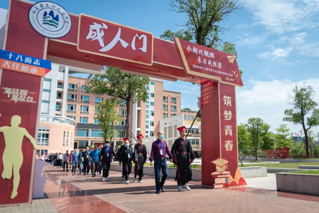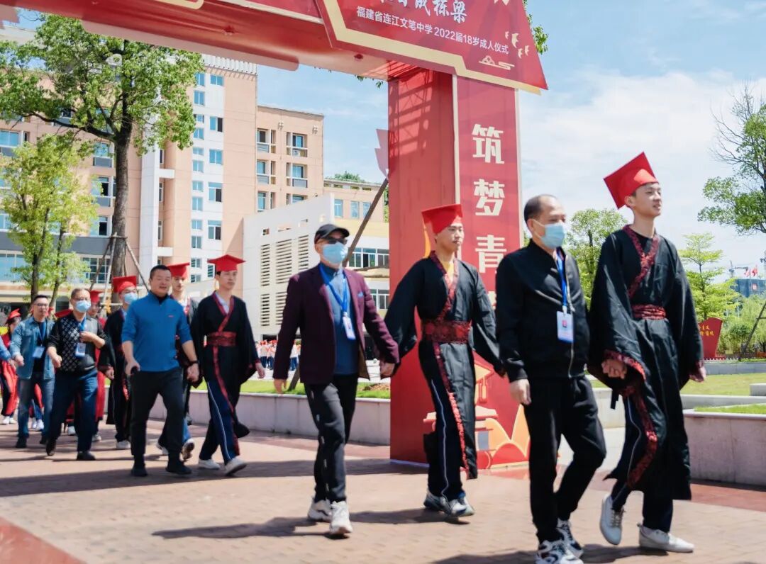 冠戴成人礼帽、跨过成人门、传统“冠笄礼”观看、佩戴成人徽章、惠赠成人纪念册、成人勋章、集体宣誓、师长祝福、成人签名、跨出成功门等系列活动,一一展示。十八岁的宽和青年,鲜衣怒马,无所畏惧,开启人生的华丽蜕变!