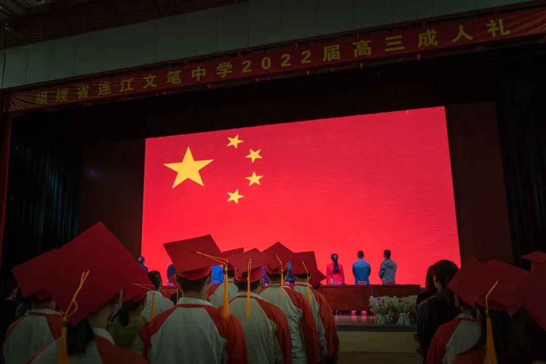 鲜艳的五星红旗迎风飘扬拉开了成人礼的序幕