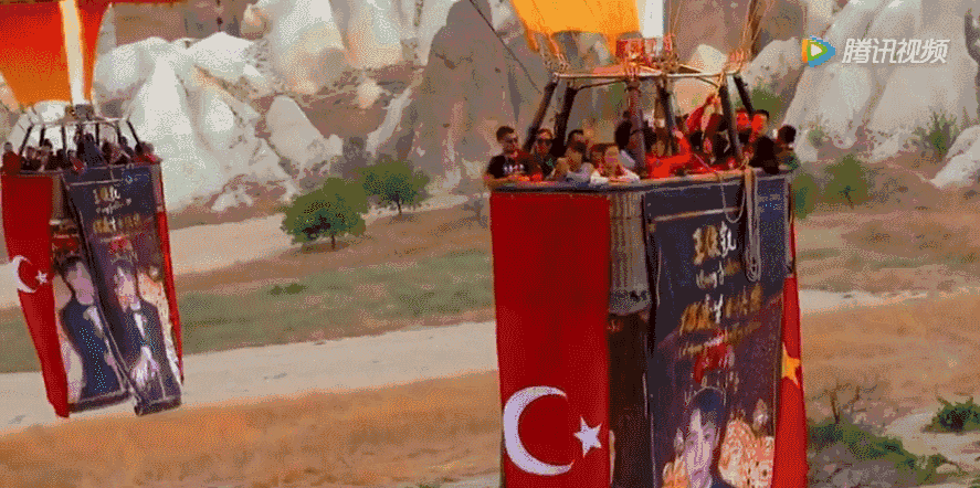 在土耳其上空升起带有王俊凯巨幅海报的热气球