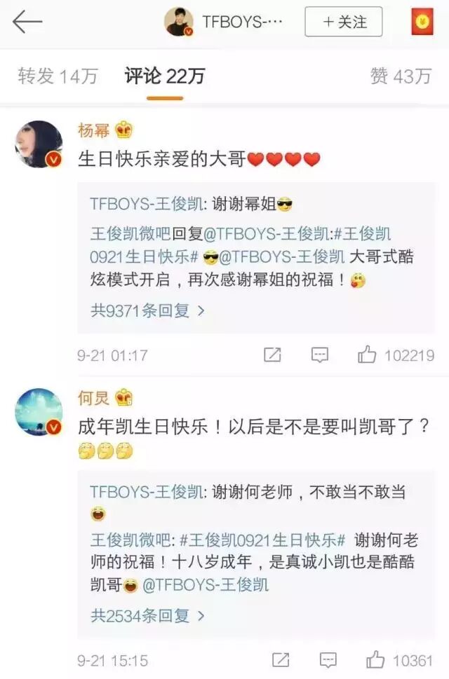 而这一话题能够登上热搜,离不开粉丝们第一时间地强劲表白,用尽各种方式,表达对王俊凯的祝福。除了粉丝,还有杨幂、何炅等明星也送上了祝福。