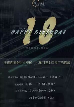 澳门9A路、25X路巴士车身、台湾商圈部分公车车身……都印上了王俊凯的形象。