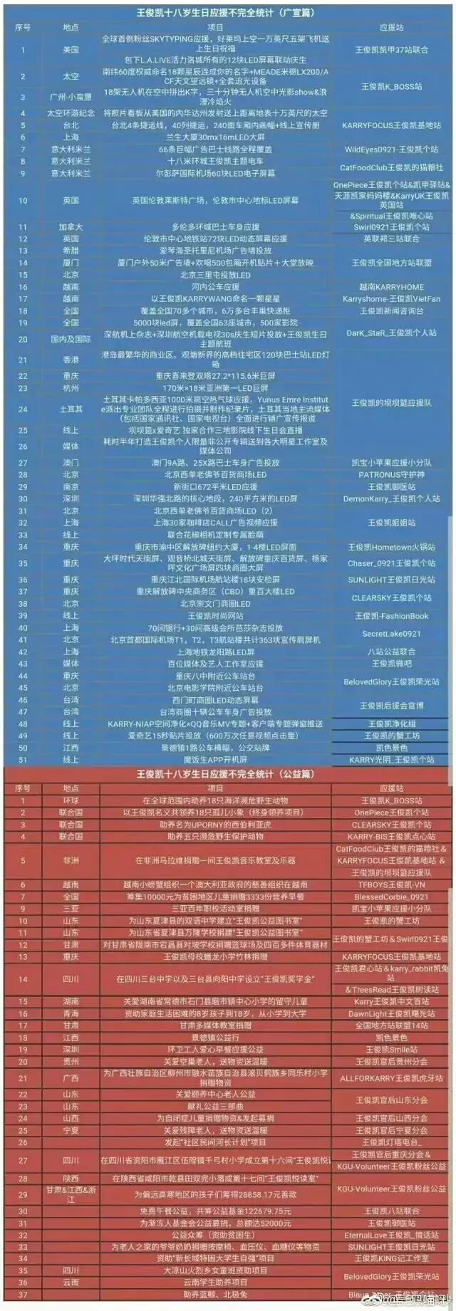 (王俊凯生日应援不完全统计,滚动观看)