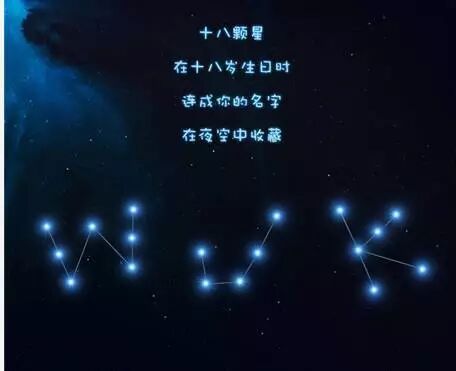 2. 买下18颗星星,连成W(王)J(俊)K(凯)