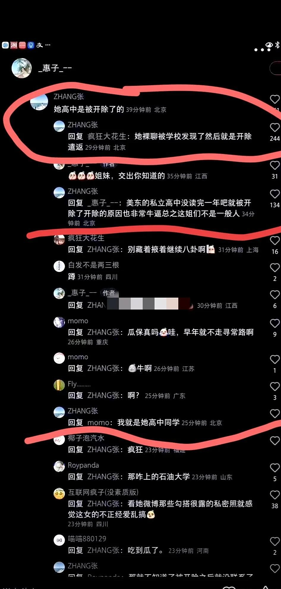 还有疑似董某的高中同学爆料称,她高中的时候就被开除了,原因是她不穿衣服和别人聊天。董某的高中是一所私立学校,她没有读完一年就被开除了,爆料的网友称她是董某的高中同学,她那时候就不是一般人。