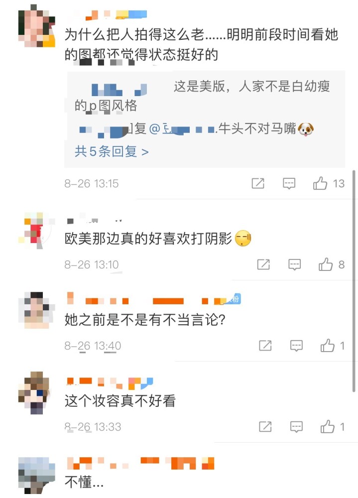 网友也对这套风格发表了自己的看法,表示摄影把人拍得很显老,反被怼道这是美版,风格不是白幼瘦。也许有人直言欧美的阴影风格真的欣赏不来。