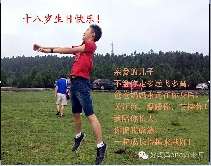 儿子:一件事物的终结,永远是另一件事物的开始。高考也不例外。每一次生日,都是对成长的盘点和总结,也是对未来的憧憬和期许。十八岁也不例外。