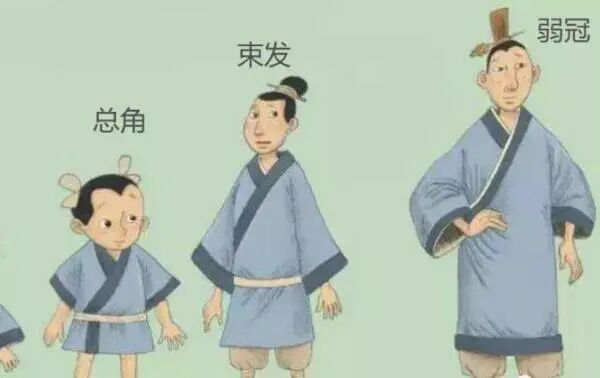 古代男子20岁成年,行“冠礼”,就是“戴帽子”,把头发梳成一束,再带上帽子。