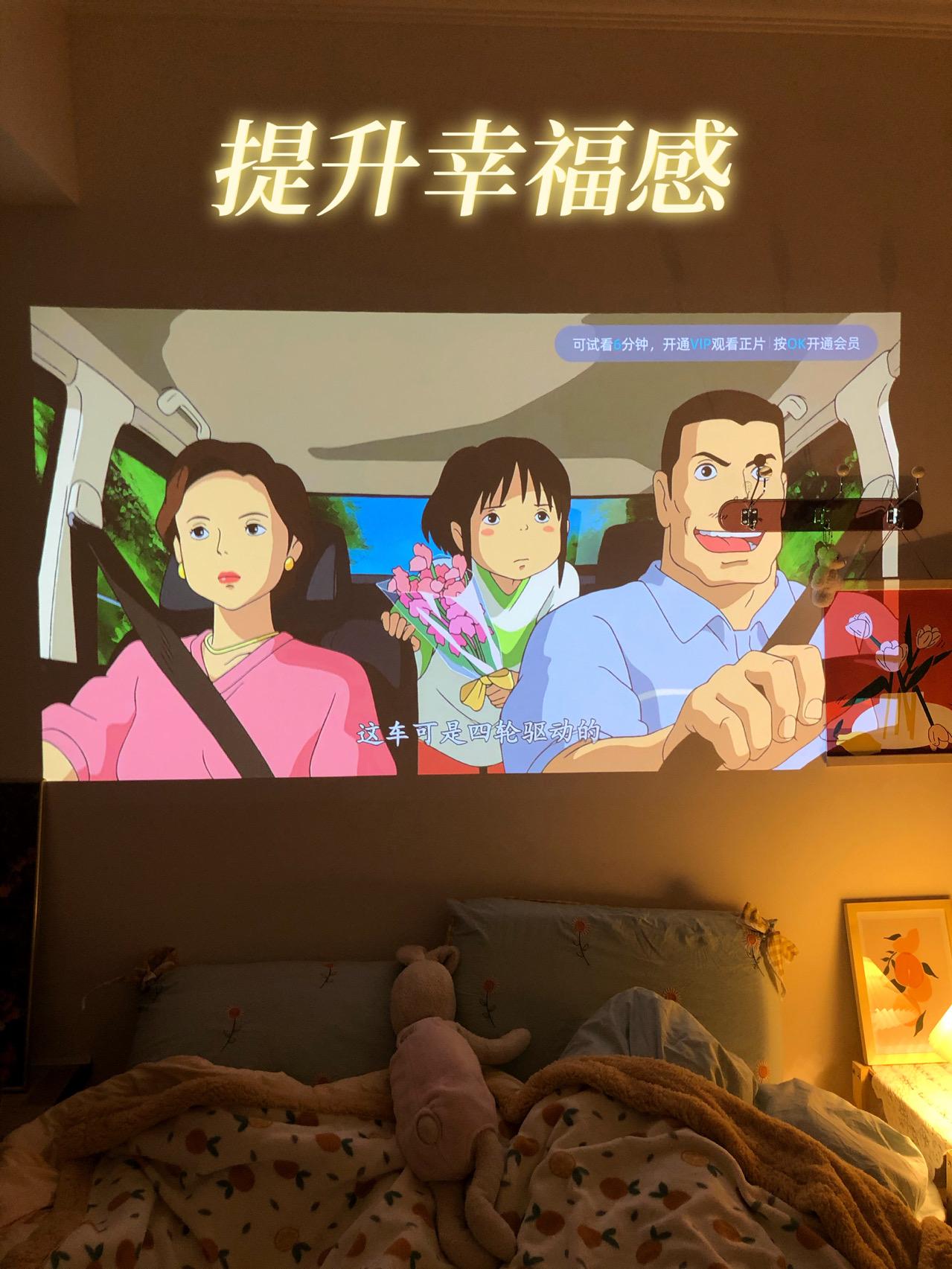 B站up主——科技美学曦彤屋子里灯光全关,点手机里的屏幕镜像,一键用手机连上投影仪,把背景照片投上去,就能拍出大片感照片啦~ ?