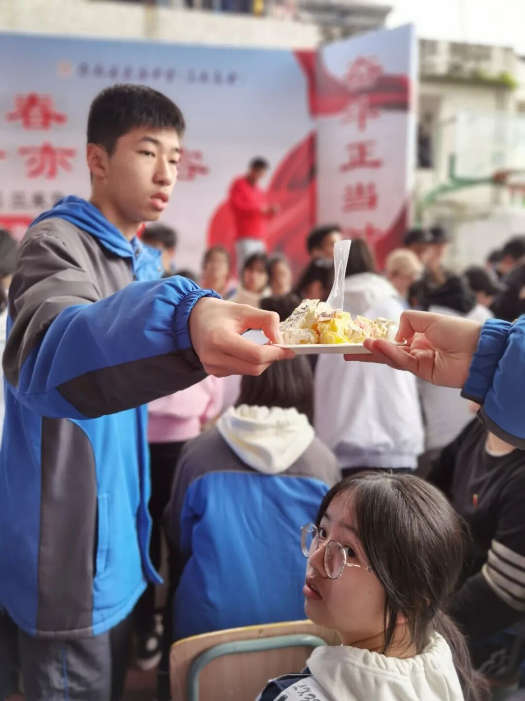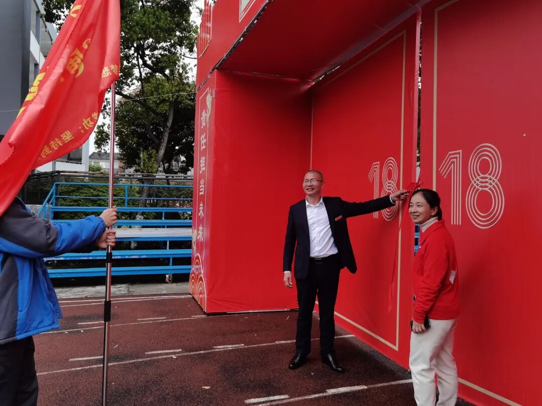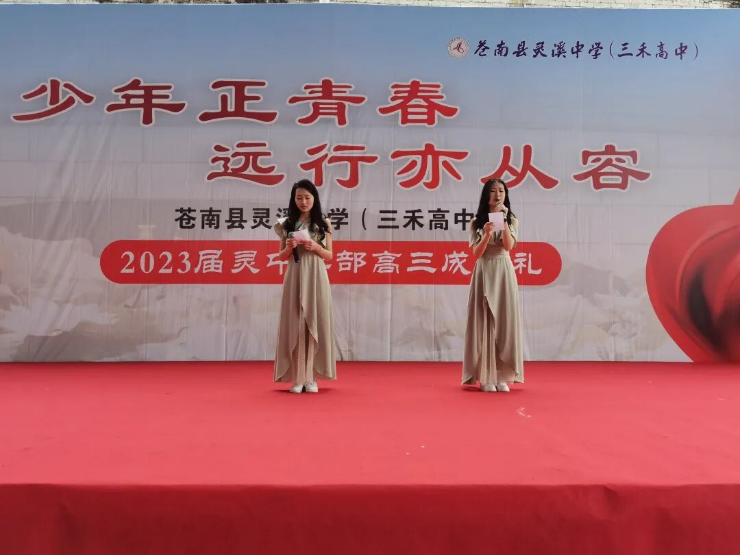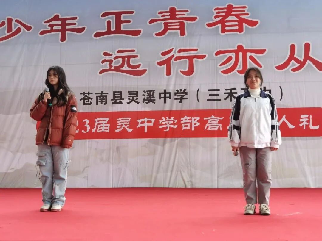 从曾经的教室出来后,大家聚集在风雨操场隆重召开主题为“少年正青春 远行亦从容”的十八岁成人礼活动。活动由陈思淇和陶优尤主持。