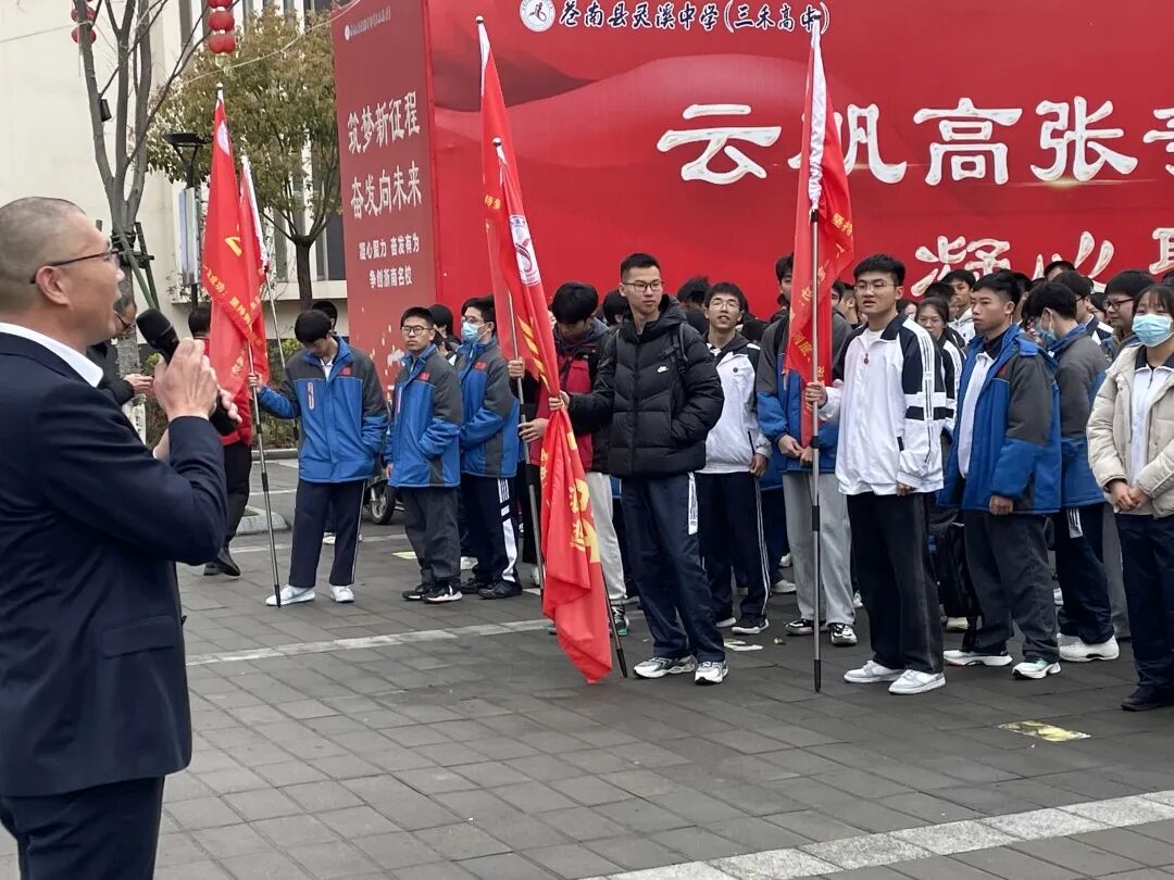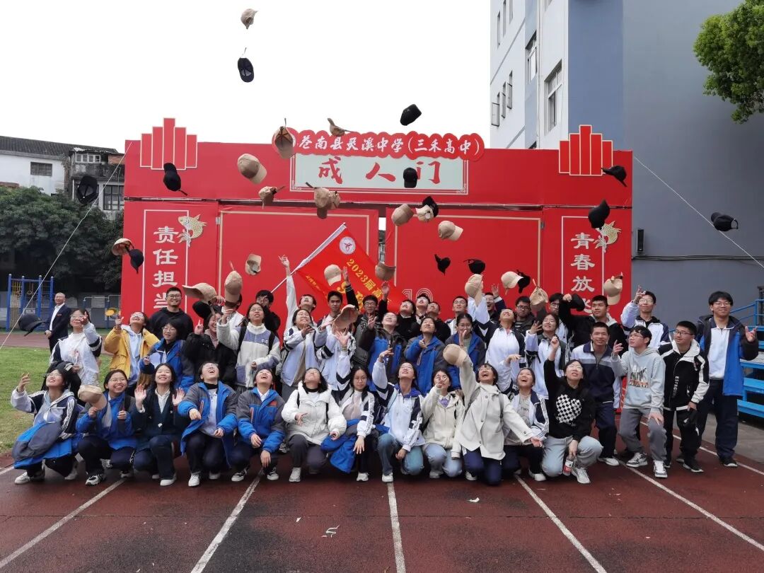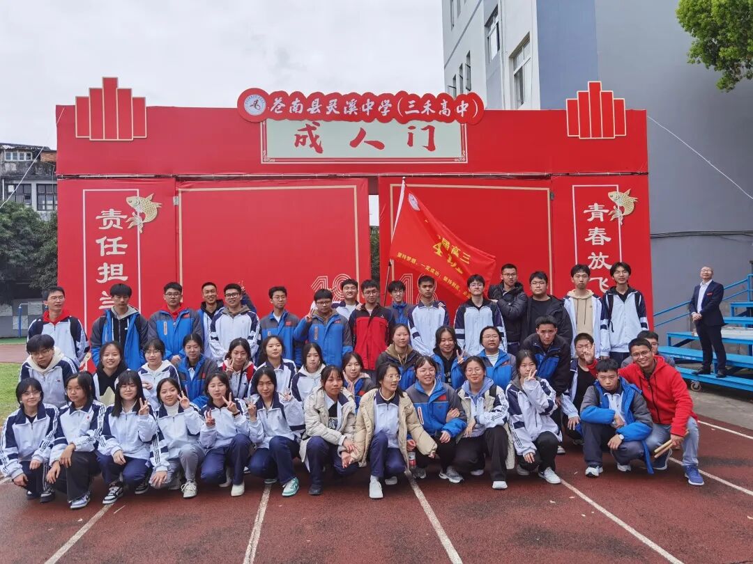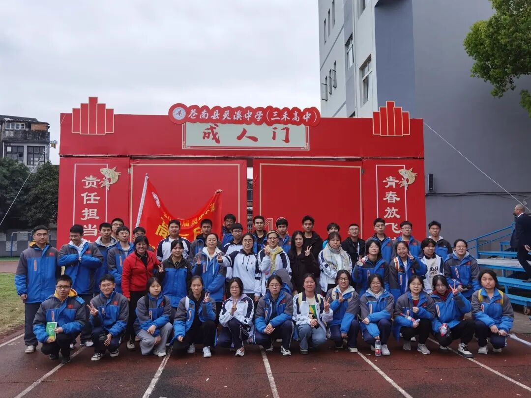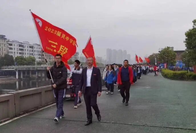 故天将降大任于斯人也,必先苦其心志,劳其筋骨……26号上午7点30分,所有灵中学部高三学子在明德楼广场前集合,苍南县灵溪中学(三禾高中)灵中学部隆重举行高三段远足和十八岁成人礼活动。灵中学部高三学子举着校旗、段旗、班旗在校党委副书记、校长黄邦泽,总务副主任、年段长陈书挺,团委委员、年段长胡镜,高三全体班主任,部分科任老师和家长们的见证与陪伴下,参加了这场青春的盛会,庆祝这一神圣的时刻。