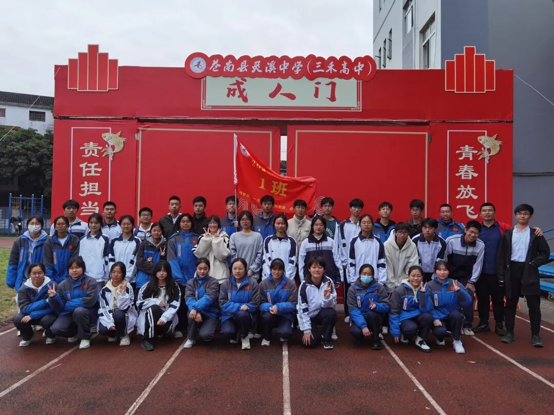 最后,各班班主任敲锣打鼓带领大家跨越成人门,踏上成功之路。这代表着同学们褪去稚嫩的束缚,摒弃冲动和任性,学会付出和担当,承担责任和义务,面向未来,展翅高飞!拥有迎战六月战场的自信与努力。