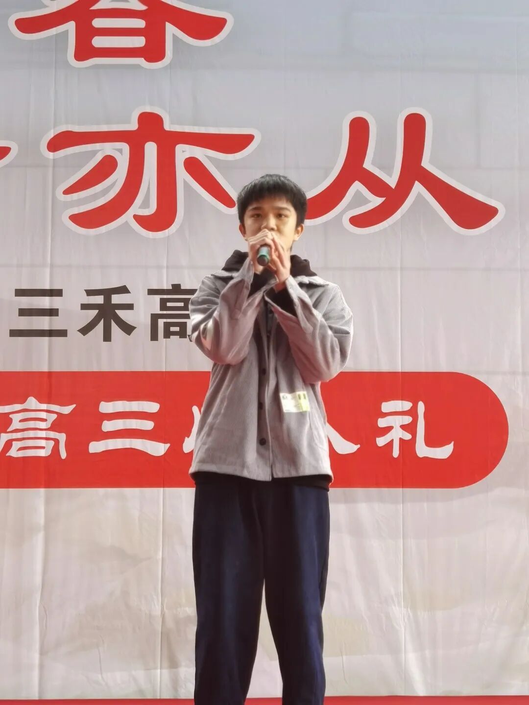 高三(10)班家长代表刘鑫的妈妈发言送祝福。她用真诚的话语表达了高三家长的殷切希望,给孩子们往后的路指明方向,相信孩子们的未来前程似锦。