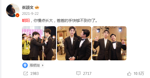 没想到在一年后的一次活动上,荣梓杉就高出张颂文大半个头了。张颂文都忍不住感叹:“朝阳,你慢点长大,爸爸的手快够不到你了。 ”网友更是在留言区调侃张颂文是个“很稳定的参照物”。