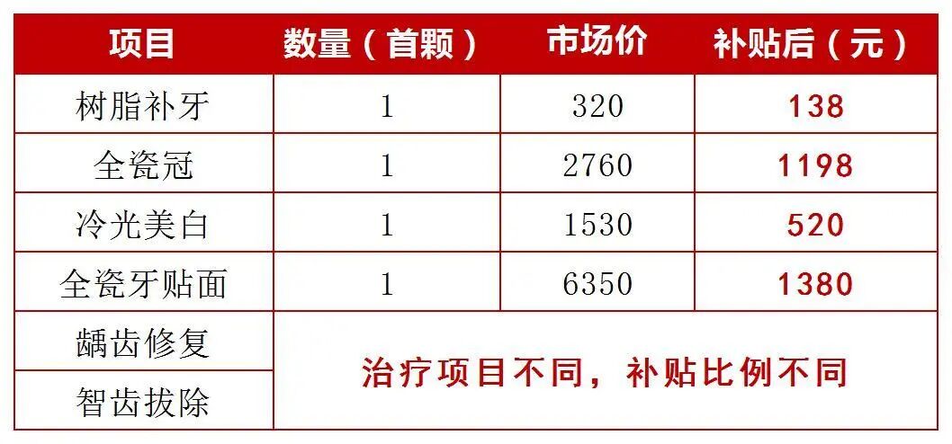 为积极响应国家卫计委《关于做好口腔种植医疗服务项目整合和价格调控的通知》相关政策,规范口腔种植医疗服务行为,切实减轻看牙负担,珠海市口腔机构联合发起“非医保报销范围口腔项目补贴计划”。