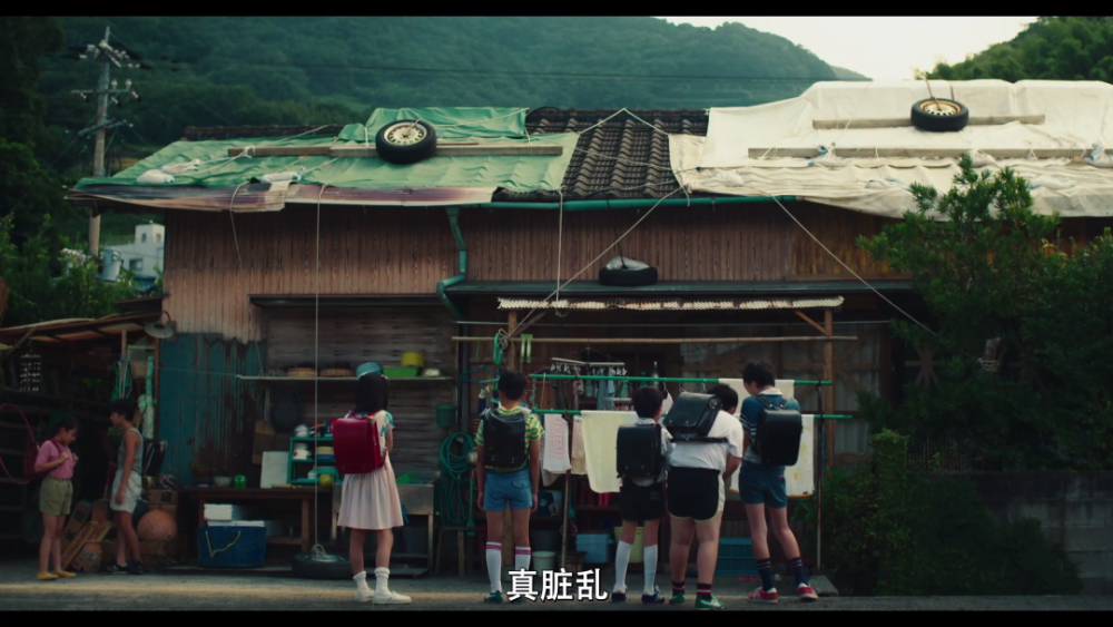 还强行参观竹本的家,对着那一堆轮胎、木板拼凑成的破烂房子大肆嘲笑。