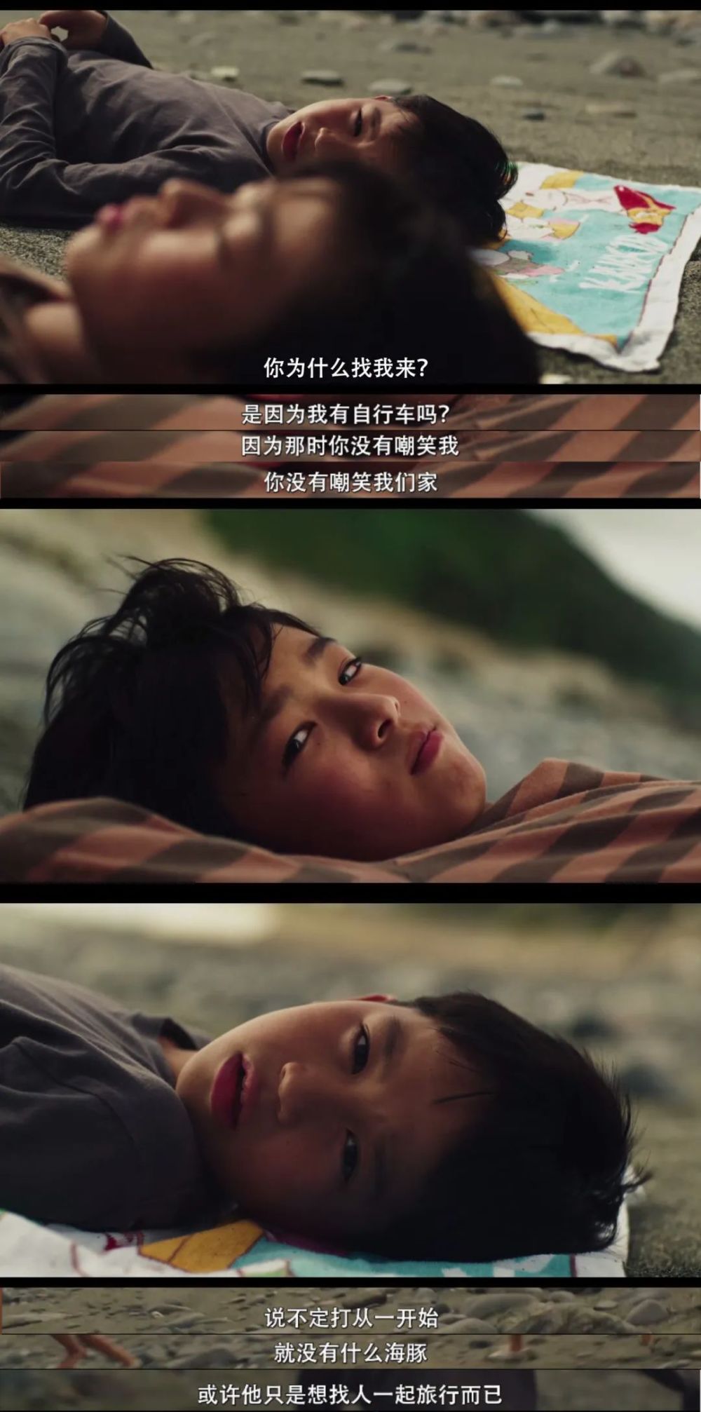 两个小男孩齐躺在沙滩上,气氛微妙地发生改变。