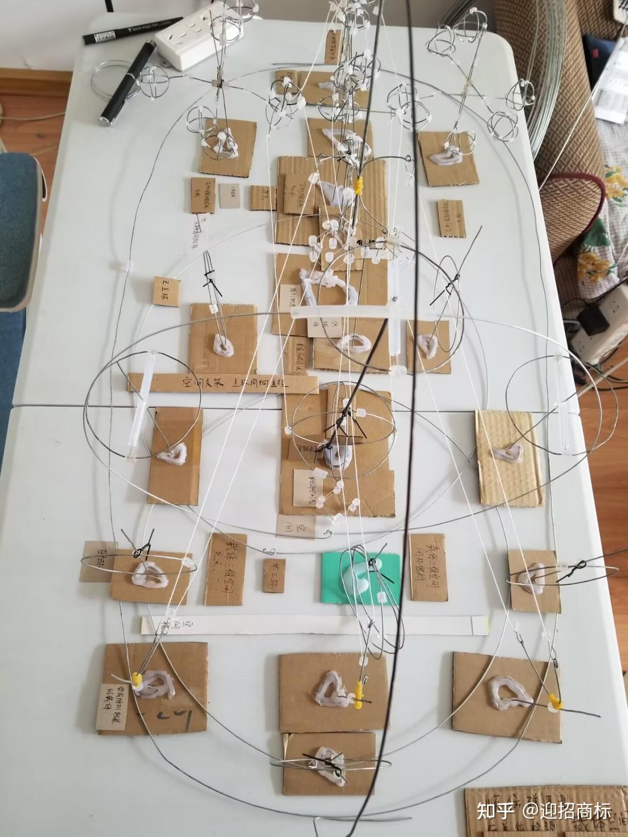 左上角是仿磁线的三维空间模型,右上边铁丝上边是正负轨道和二级存储模型,正负轨道具有划线(调定仿磁线)功能,二级存储模型可能具备存储和少量划线功能,为了方便模块化,假设存储不具备划线功能。正负轨道下面是两个(左右)顺仿磁体,后面是(左右)顺仿磁体二级存储。