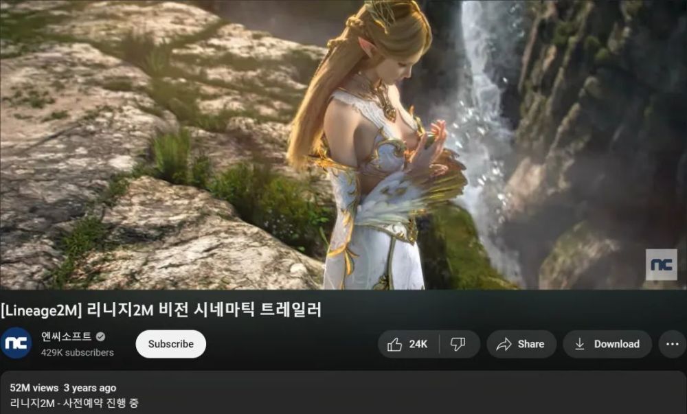 《天堂 2M》的游戏预告,播放量超过 5200 万次