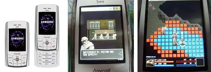 2007 年,他们还把大型 RPG《创世纪战 3 - 第一篇章》移植到了手机上。它分为 4 部分,第一部分在 2007 年发布,最后一部分在 2011 年发布(第二篇章从未移植)。这是在三星 2006 年的手机 SCH-V890 上运行第一部分的画面: