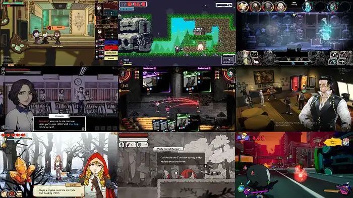以上游戏按顺序排列是《脑叶公司》(Lobotomy Coration,2018)《贪婪地牢》(Dungreed, 2018)《圣铠:冰魂》(Vambrace: Cold Soul, 2019)《昏迷 2:恶毒姐妹》(The Coma 2: Vicious Sisters, 2020)《废墟图书馆》(Library of Ruina, 2020)《纷争终结者:被遗弃的孩子们》(Troubleshooter: Abandoned Children, 2020)《红帽仙踪》(Scarlet Hood and the Wiched Wood, 2021)《8 道门:雅兰的来世冒险》(8Doors: Arum's Afterlife Adventure, 2021)《里弗尔效应》(Riffle Effect, 2021)。