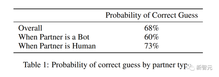 对人类来说,识别自己的人类同胞更容易。与人类交谈时,被试猜对的准确率有73%。与AI交谈时,被试猜对的准确率有60%。