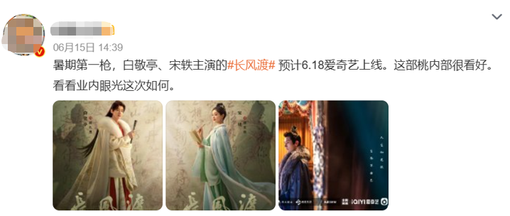 不过,没等来上述两部剧,倒是先等来了《长风渡》,定档于6.18日上线“桃厂”。