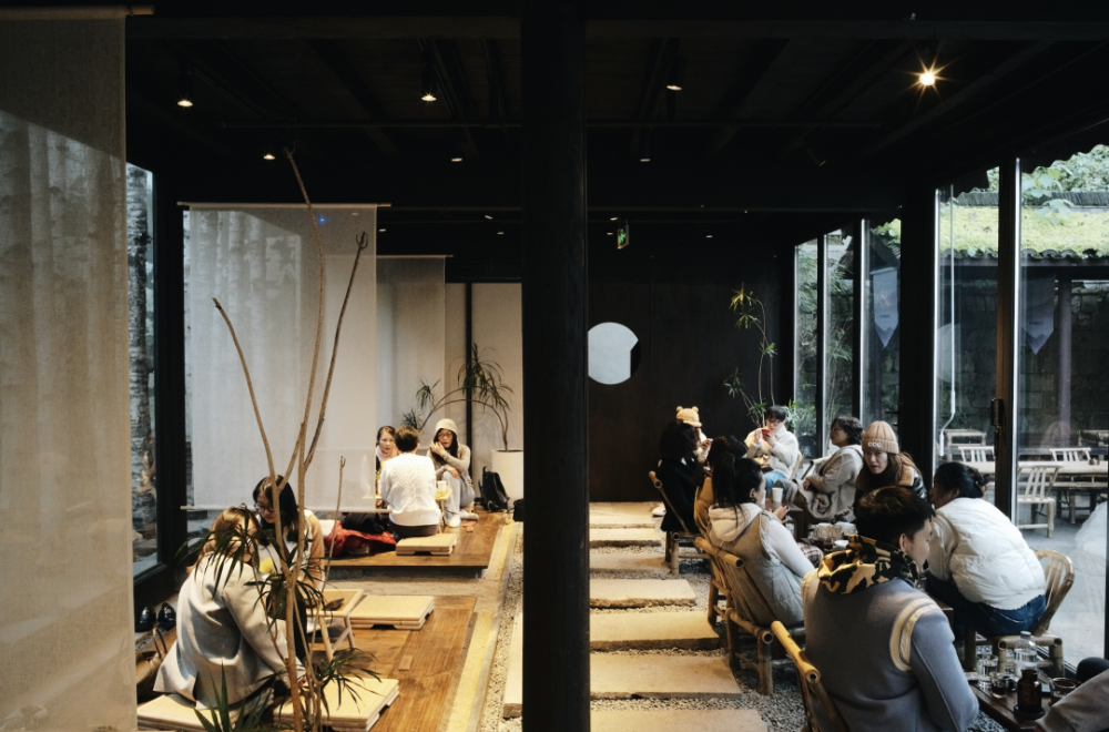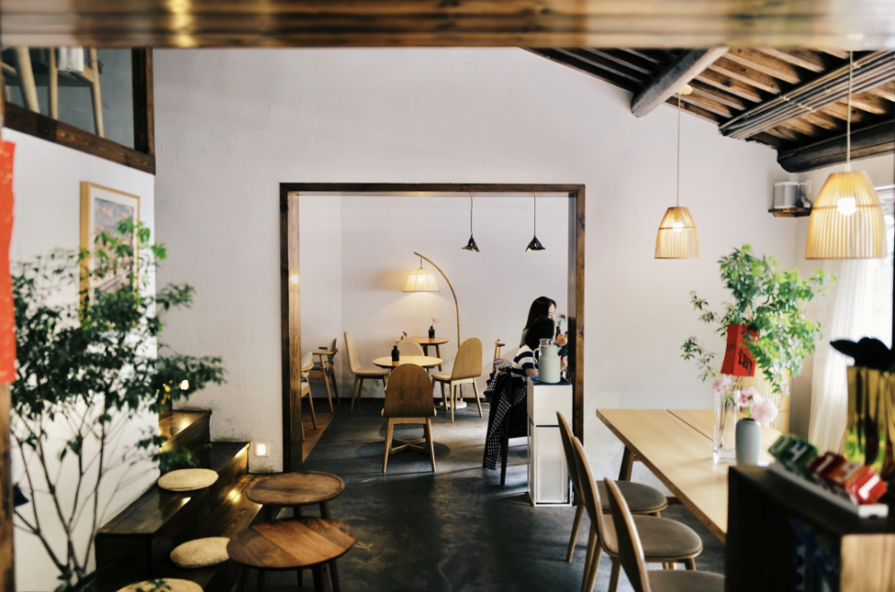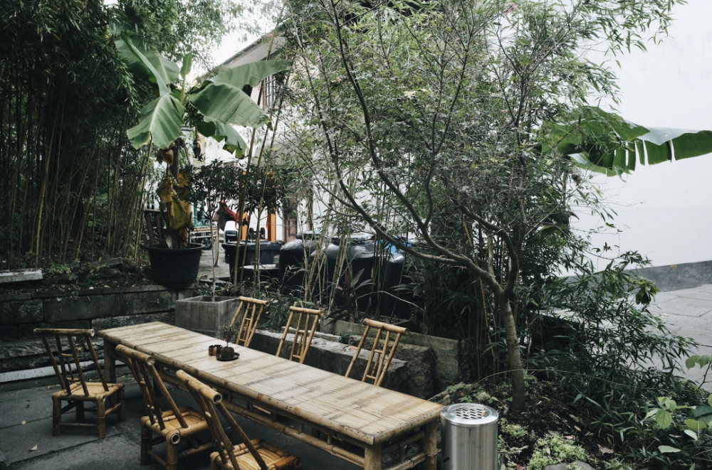 古屋、石子、竹椅、垂帘... 古色古香的建筑完美融合了江南的特点,营造出一种大隐隐于市的感觉。