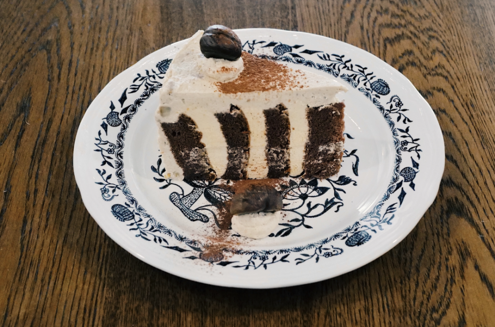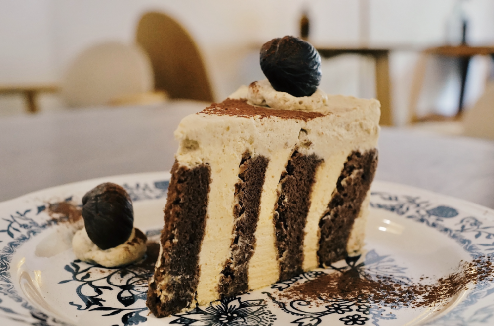 对了,竹子咖啡的焦糖栗子巧克力奶油旋涡蛋糕也是超级好吃的。不会太甜腻,能吃到栗子的颗粒。