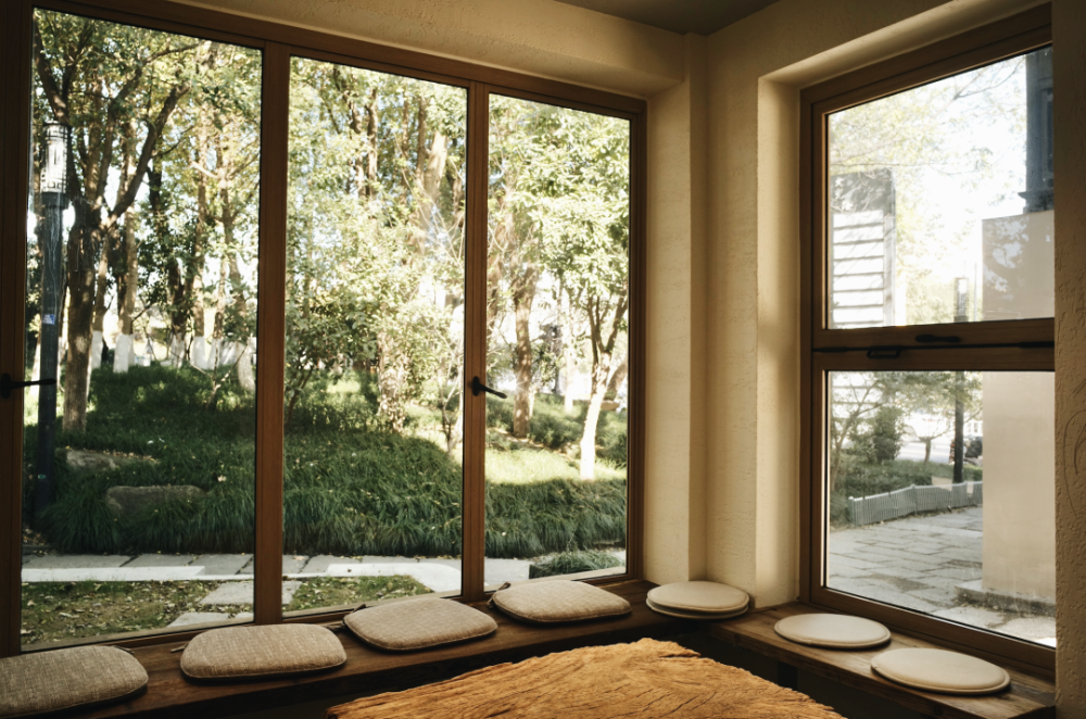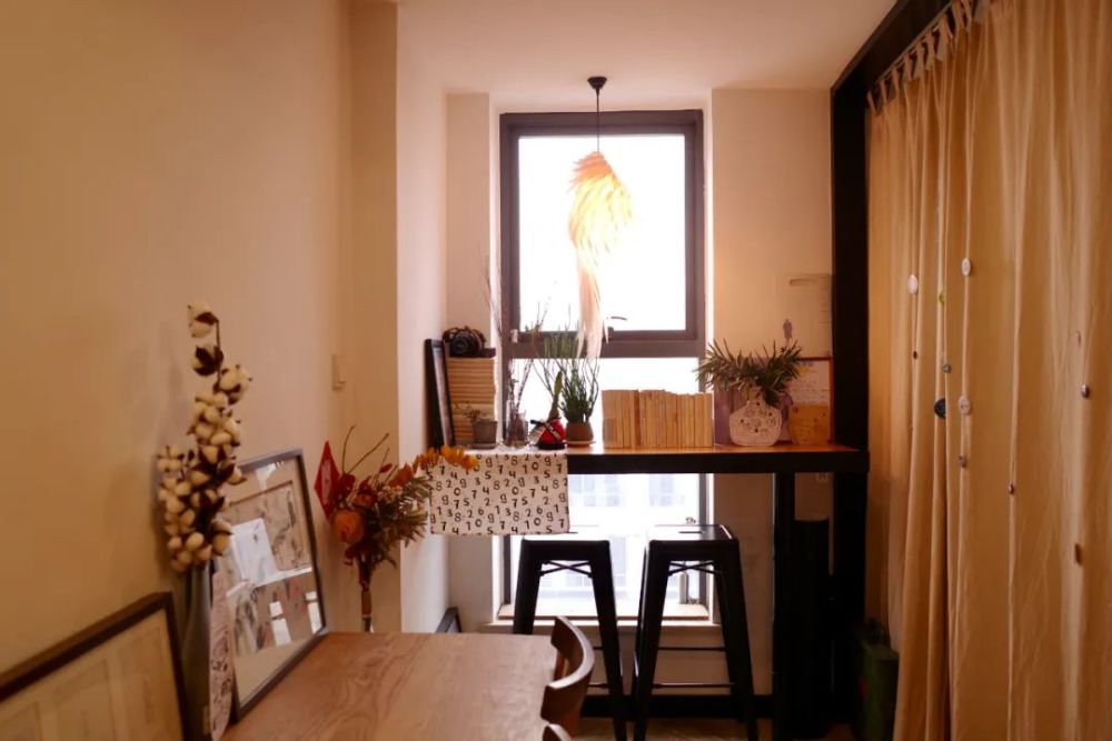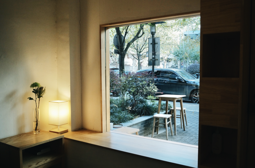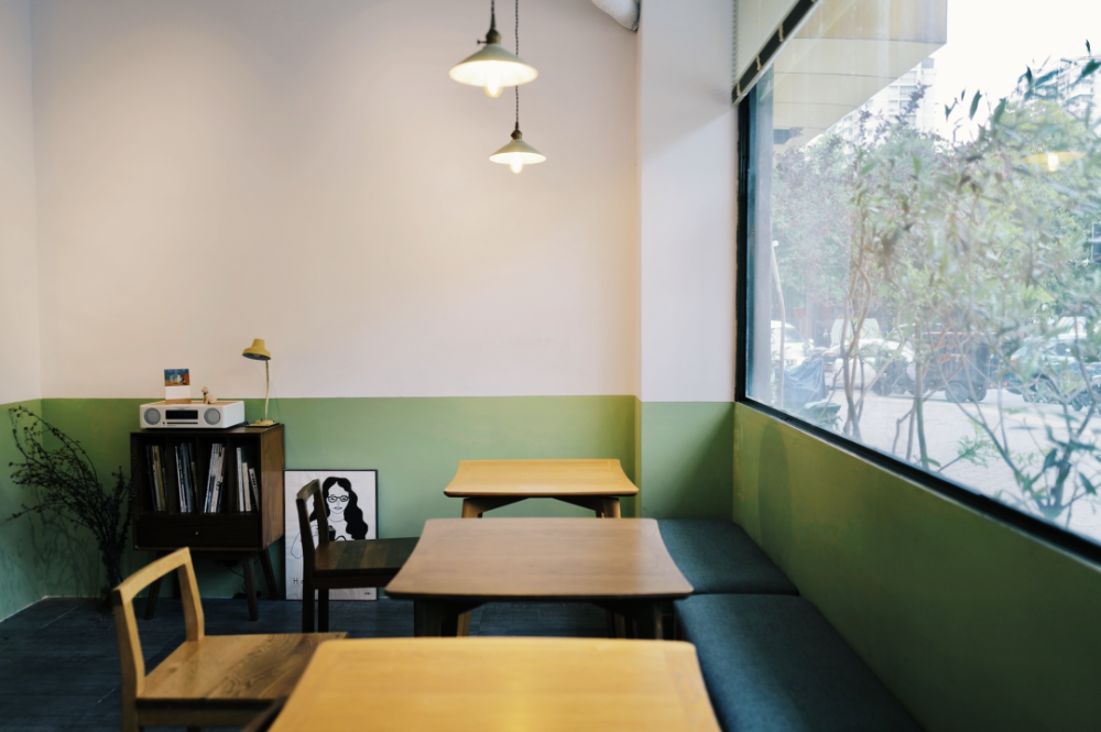 很喜欢它家转角靠窗的位置,百叶窗外隐约能看到绿色的树,两三米外的书桌上还放着一大摞书,是个让社恐呆着很安心的空间,可以一个人安静地在那看书发呆。