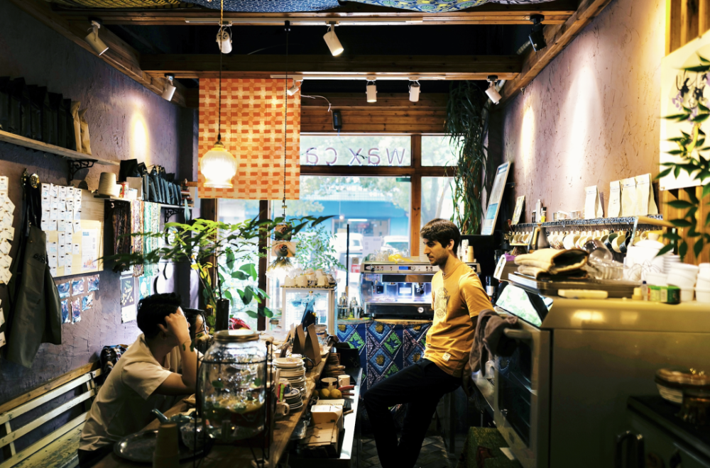 这家以绿为主色调的咖啡店,确实很有惊喜感。与其说咖啡馆,这里更像是社区邻里朋友们的聚集地。