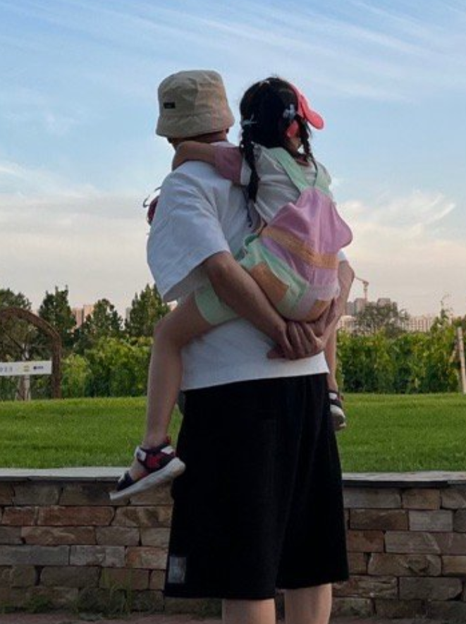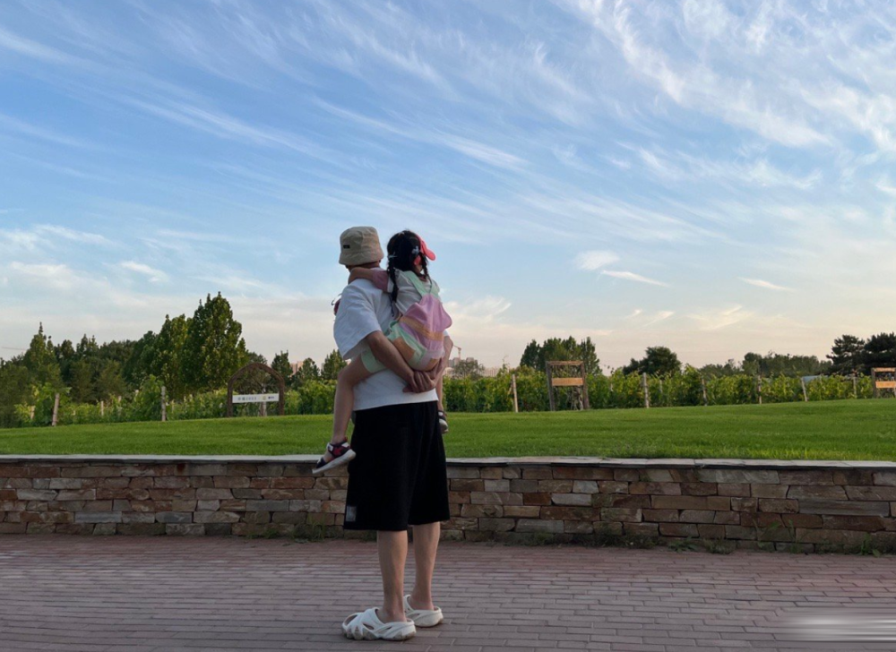 王骏迪担任摄影师拍下老公背女儿玩耍的画面,孙红雷与女儿Addy终于同框了!