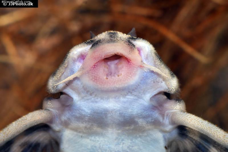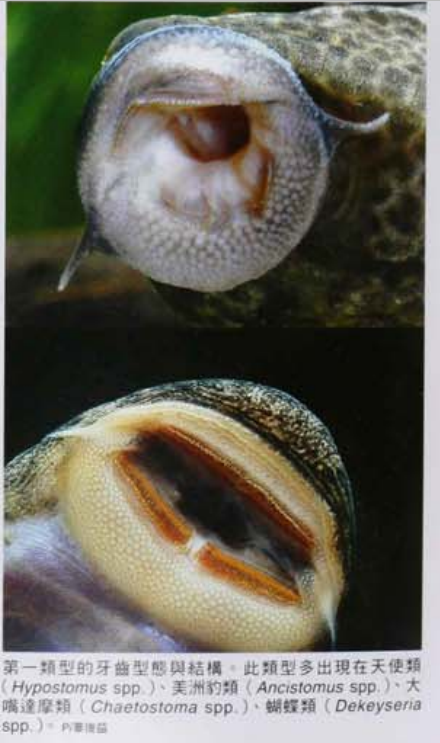 吸甲鲶科-钩鲶亚科-巴拉圭鲶属的皇冠豹类吸甲鲶科是一群相当独特的鱼类。即使是对于从未了解过鱼类分类的人来说,吸甲鲶科的鲶鱼也能通过多种特征很容易地与其他鱼类区别开来,如扁平的身体,身体上覆盖着坚硬的骨板和称为“odontodes”的与牙齿同源的“外齿”,以及位于腹部的、上颚和下颚肉质化形成一个吸盘的嘴,口内有或坚硬或软质的牙齿。吸盘嘴可以在急流中附着在固体基质上,同时也可用来拨开软质基质和咀嚼食物。嘴部位于头部的下方.颚部形成一个无法闭合的吸盘,上唇较窄,下唇较宽.在上、下唇两侧的交接处有一对发达的唇须。大多数的吸甲鲶可以借助这样的嘴部构造轻松地附着在水下的岩石或者沉木上自由活动,而不必担.心被水流冲走,而较为扁平的体形也很好地帮助了它们减少在急流中受到的阻力。另外一部分在水底沙滩栖息的品种不需要发达的吸盘来帮助定位身体。这些品种的吸盘较小,有些上、下颚上演化出了细小的触须用来探测沙里的食物,具有味觉功能。在吸甲鲶科中,味蕾几乎覆盖了身体和鳍刺的整个表面,也就是说它们的全身都是“舌头”,这与章鱼的触手具有味觉作用相似。