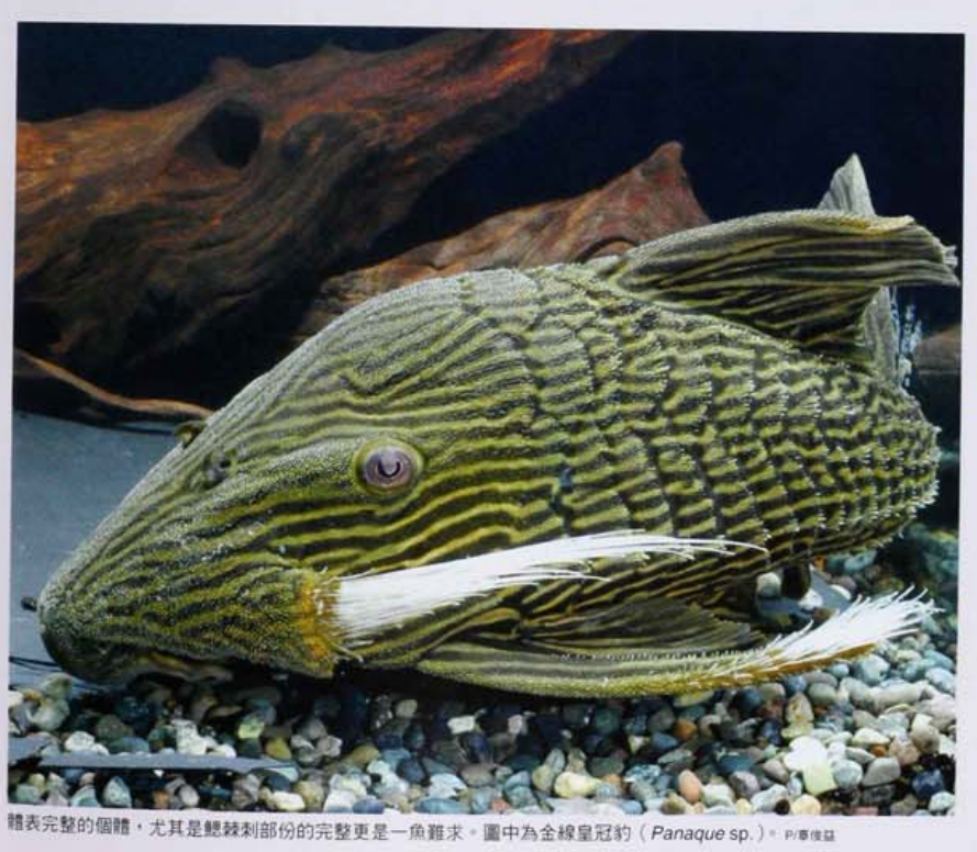 皇冠豹的鳃棘和胸鳍棘,还可见身体后方也有一些短小的刺凭借着骨甲、吸盘和棘球,在整个南美洲和中美洲南部,从海拔3000米以上的安第斯河到潘塔纳尔河和亚马逊河的广阔低地漫滩,到激流到静水的栖息地,以及南美洲北部海岸的河口,吸甲鲶科占据着各种大小的水文系统,如此繁多的鱼类自然也吸引了人们的注意。