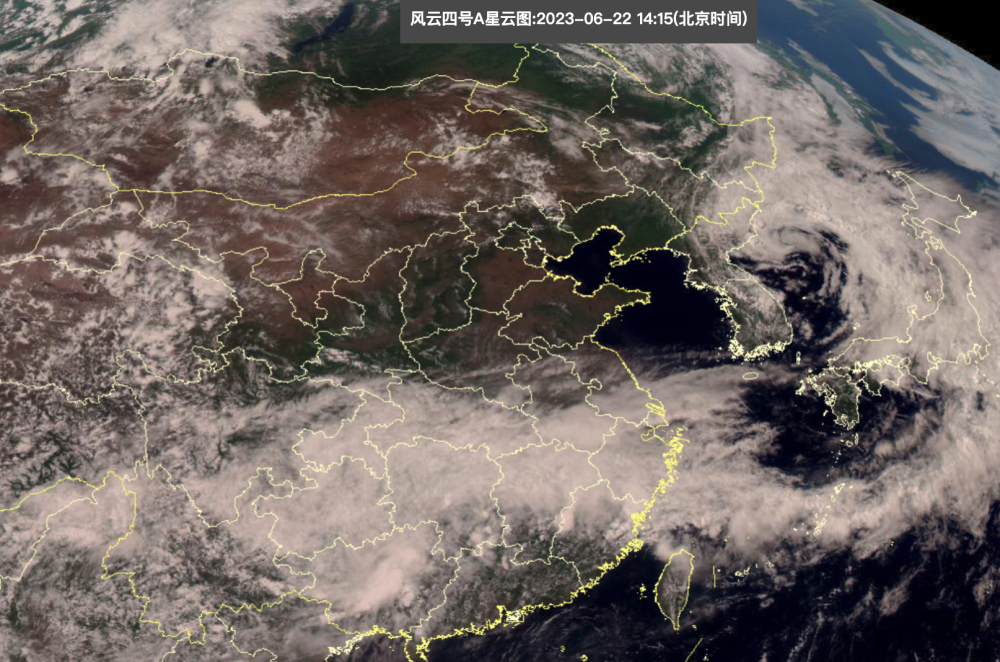 6月22日下午,从风云四号高清可见光卫星云图上可见,在端午节这天,我国中东部地区的天气形势其实已经很有初夏的味道——在南方,随着副热带高压北侧季风水汽大量涌入,大范围的雨带正笼罩南方多地,这是今年最激烈的梅雨天气过程正在启动。在北方,随着西风带暖脊东移和干热气团东传,大范围的晴朗天气已经在华北黄淮多地出现。