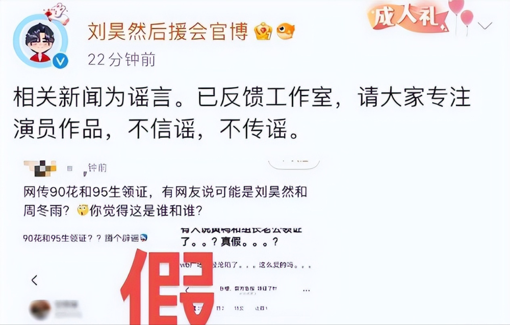 不料刘昊然工作室马上出面否认,称领证是谣言,却没否认恋爱的传闻,也让粉丝急了,直接怒问:“没恋爱几个字烫嘴吗?”