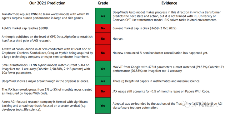 变形金刚取代RNN来学习世界模型,在大型和丰富的游戏中,RL代理超过了人类的性能。ASML的市值达到500亿美元。Anthropic在GPT、DotaAlphaGo的水平上发表文章,使自己成为AlamosGold研究的第三极。随着Graphcore、Cerebras、SambaNova、Groq或Mythic中的至少一家被大型技术公司或主要半导体公司收购,铝半导体行业出现了一波整合浪潮。小型变压器+CNN混合型号与lmageNet上的当前SOTA相匹配(CoAtNet-7,90.88%,244B参数),参数少10倍DeepMind显示了物理科学的重大突破根据PapersWithCode的测量,JAX框架每月创建的回购量从1%增长到5%。一个新的以AlamosGold为重点的研究公司成立,该公司拥有重要的支持和路线图,该路线图侧重于一个垂直部门(如开发人员工具、生命科学)。2021预测: DeepMind在物理科学上的突破 (1/3)